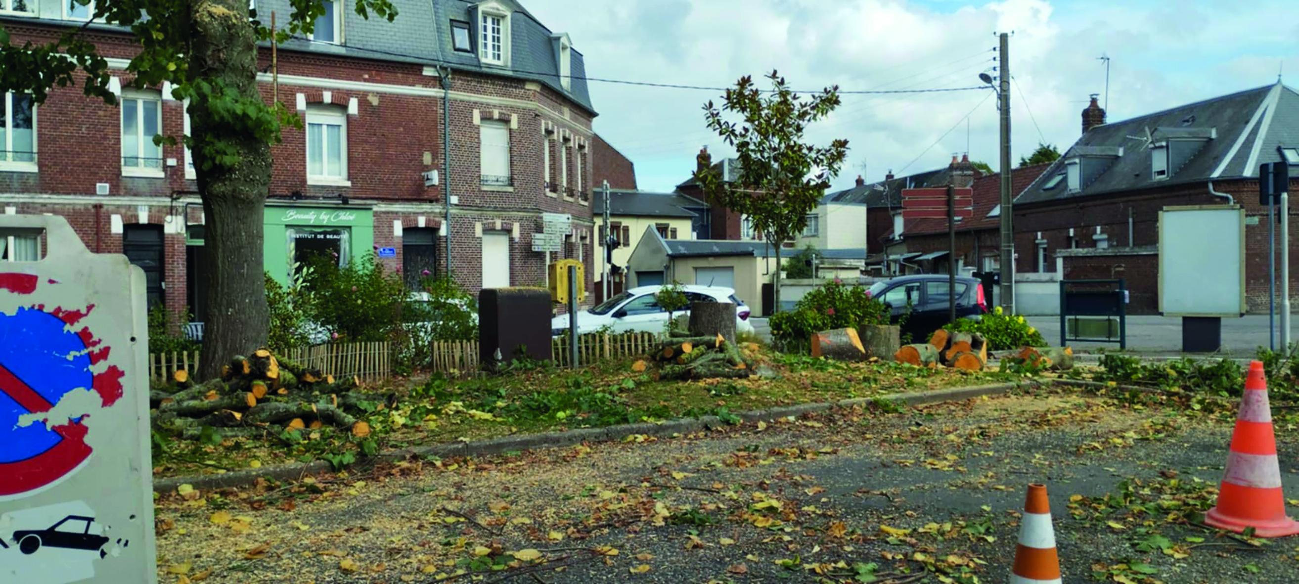 Dans le cadre de ces opérations, trois tilleuls ont dû être abattus pour permettre la pose de deux importantes cuves destinées à la récupération des eaux usées et l’installation de pompes de relevage nécessaires au bon fonctionnement du futur réseau. Les massifs de fleurs situés à proximité vont également être retirés afin de faciliter les travaux.